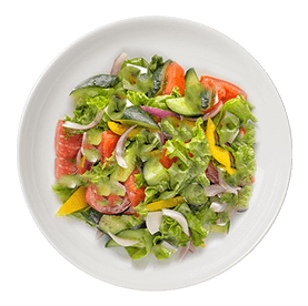 Salade verte, tomates, poulet, oeuf, maïs, olives + Pain offert sur demande.